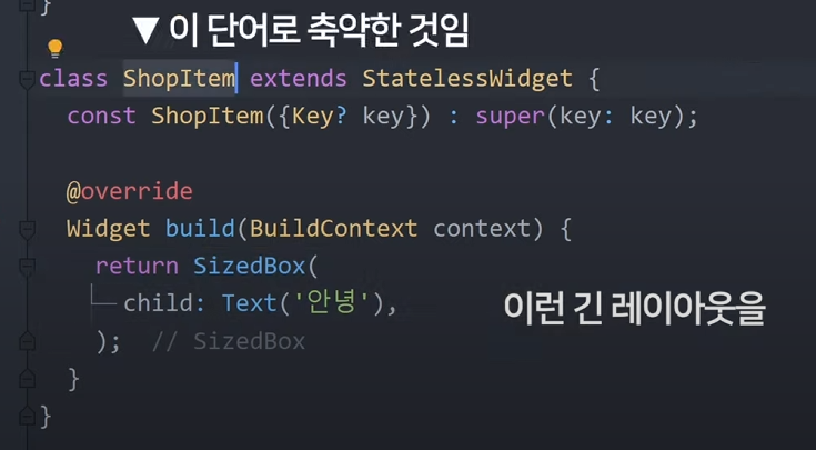 변하지 않는 UI들은 변수,함수로 축약해 써도 상관없다 stless 안써도됨