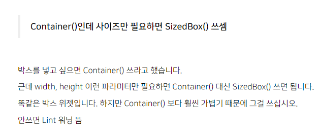 박스그리고싶으면 home: Container(width: 50,height: 50,color: Colors.pinkAccent) 인자들을 넣어줘야 박스가 그려지면서 보임