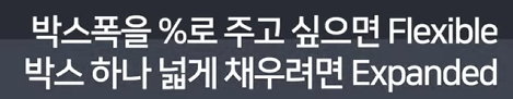Flexible( ) 은 자식위젯이 자유롭게 사용한 공간에 따라 크기를 조절하는데 도움을준다(css flex 같은거인듯)