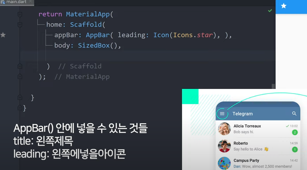 아이콘 넣을땐 Icon(Icons.아이콘이름) Icons.star 하면 별모양나옴